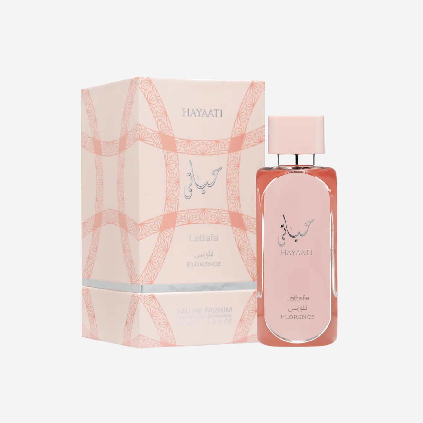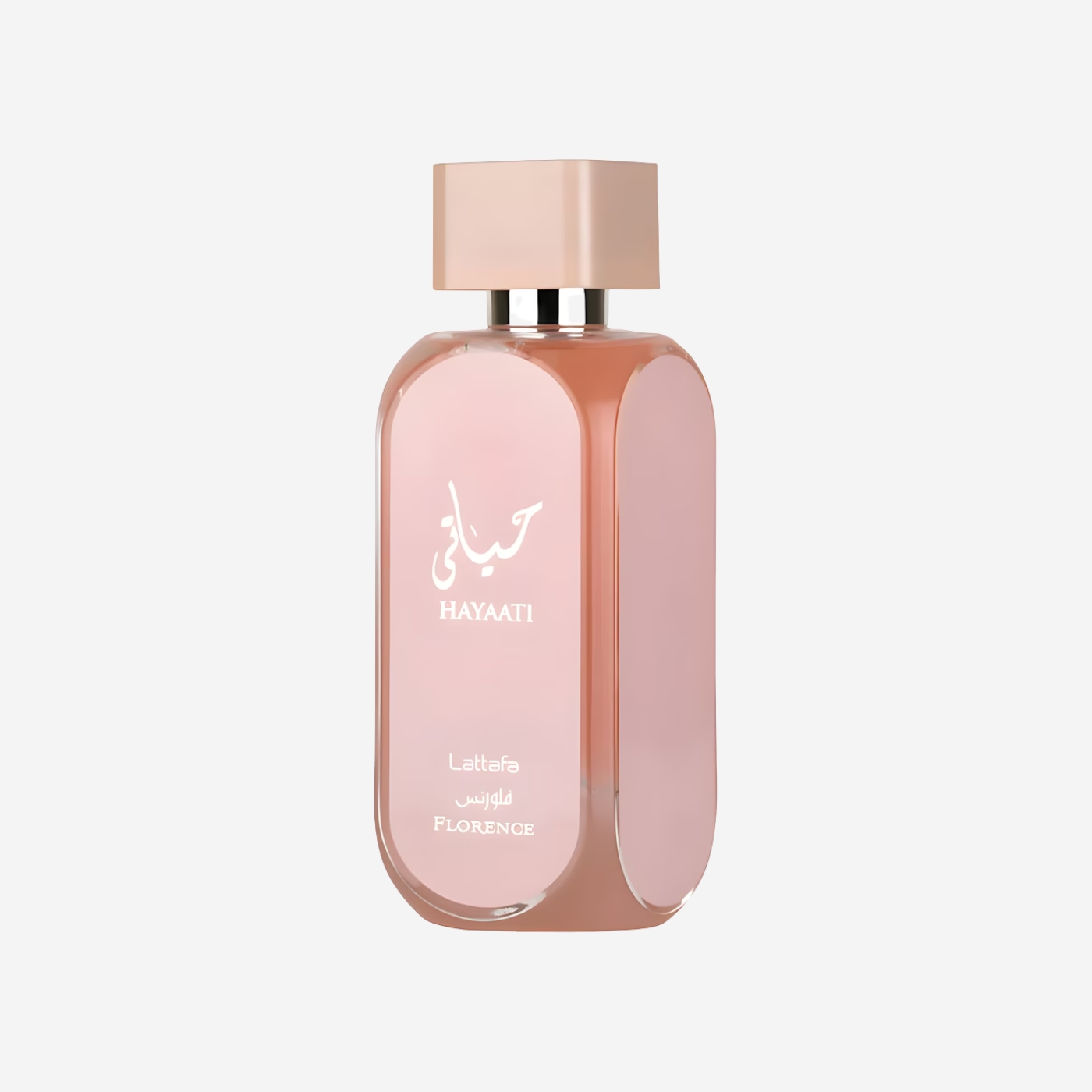 Hayaati Florence de Lattafa est un parfum féminin de la famille fruitée florale gourmande, le parfum s’ouvre sur une note de tête vive et fraîche de pamplemousse, qui capte immédiatement les sens par son éclat intense et pétillant. Ce départ énergique offre une sensation de vitalité et de dynamisme, comme une gorgée d’agrumes fraîchement pressés le matin.